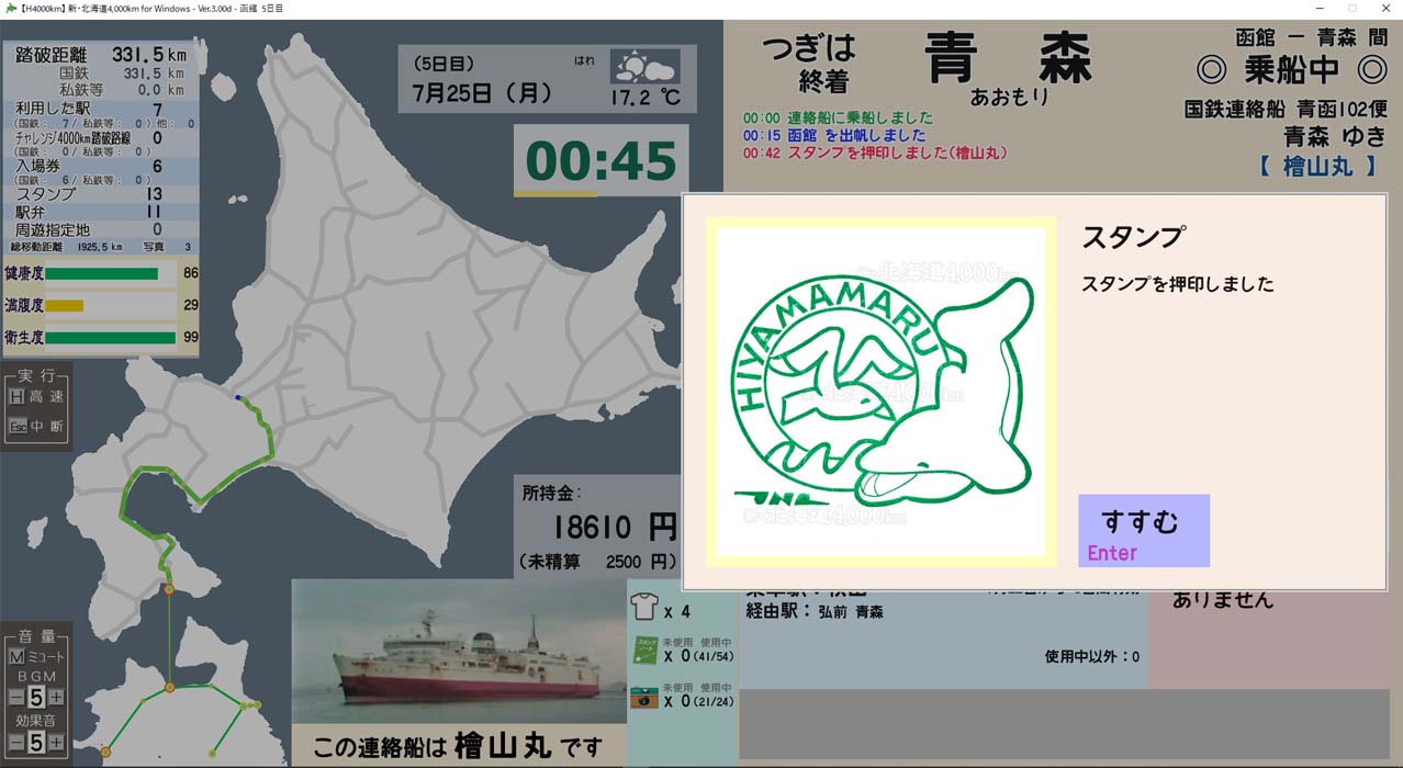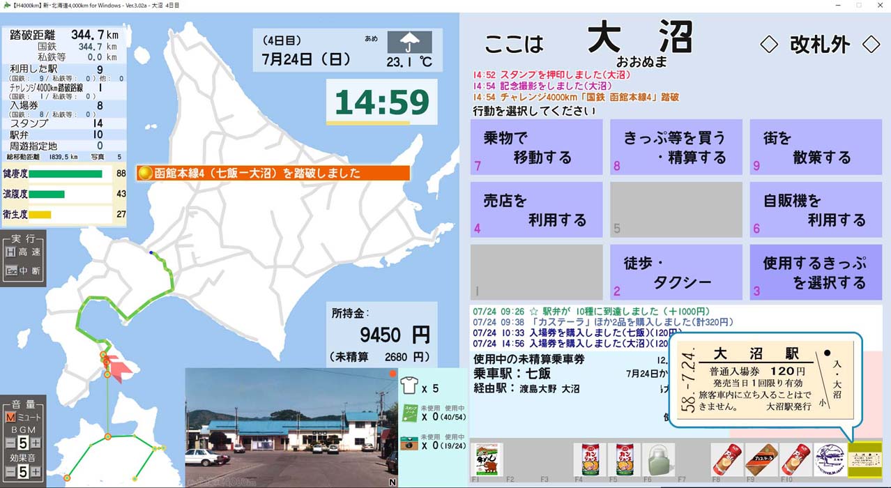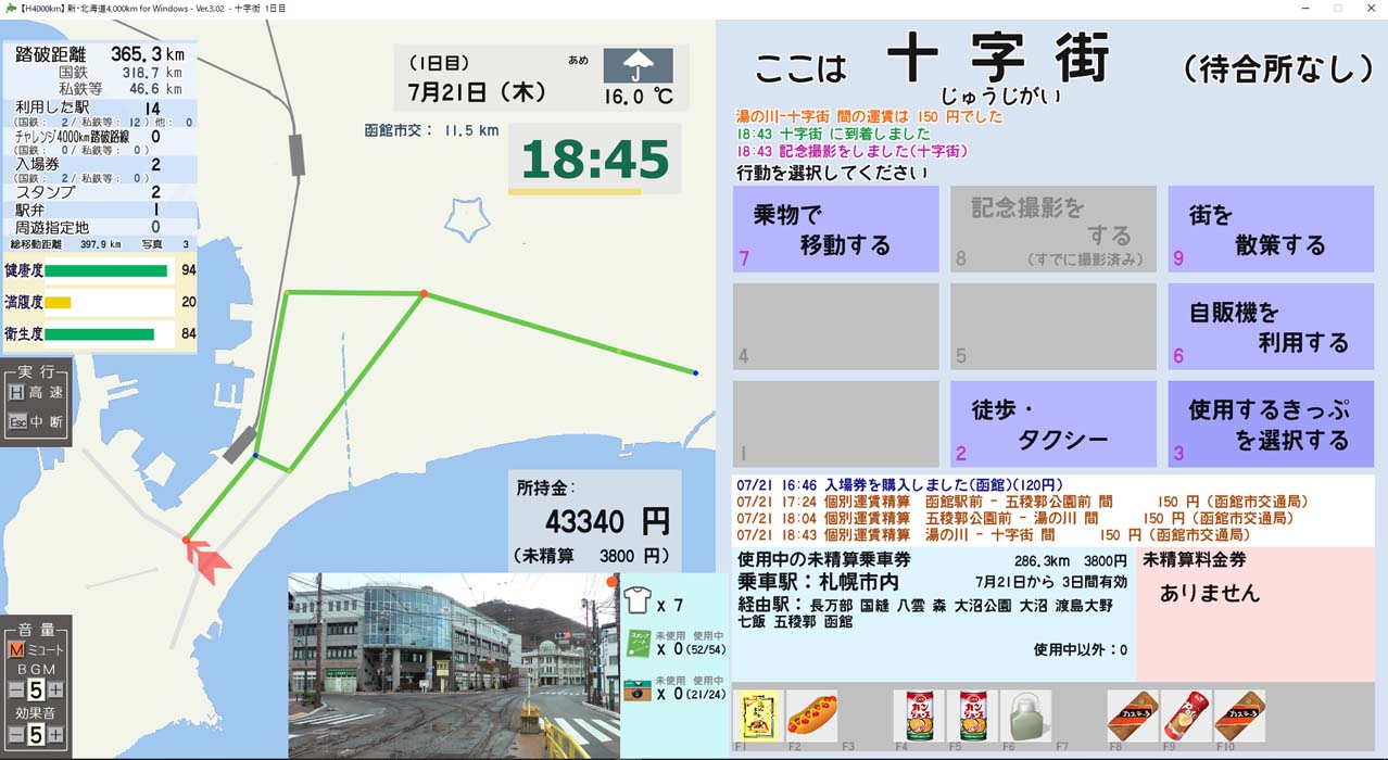 ²èÌÌÎ㣠¤¢¤ëÏ©Àþ¤òƧÇˤ¹¤ë¤È¤¤Ëµ¯ÅÀ±Ø¤È½ªÅÀ±Ø¤ÇµÇ°»£±Æ¤¹¤ë¤³¤È¤Ç¡¢¡Ö¥Á¥ã¥ì¥ó¥¸4,000km¡×¤Ë¼«Æ°Åª¤Ë »²²Ã¤·¤Þ¤¹¡£Æ§ÇËÏ©Àþ¡¦¶è´Ö¤¬°ìÄê¿ô¤Ë㤹¤ë¤¿¤Ó¤Ë¡¢½ê»ý¶â¤òÁý¤ä¤»¤Þ¤¹¡£¤Ç¤âµ¯ÅÀ±Ø¤ä½ªÅÀ±Ø¤Ë¤Ï ÉáÄÌÎó¼Ö¤·¤«Ää¤Þ¤é¤Ê¤«¤Ã¤¿¤êËÜ¿ô¤¬¾¯¤Ê¤«¤Ã¤¿¤ê¡¢ÆüË׸å¤Ï¼Ì¿¿¤¬»£¤ì¤Ê¤«¤Ã¤¿¤ê¤È¤¤¤í¤¤¤íÂçÊÑ¡£ ¡Ê¥²¡¼¥à¤Î¿Ê¹ÔÃæ¤Ë¤Ï¤Û¤«¤Ë¤â½ê»ý¶â¤òÁý¤ä¤»¤ë¥¤¥Ù¥ó¥È¤¢¤ê¤Þ¤¹¡£½ê»ý¶â¤¬£°¤Ë¤Ê¤ë¤ÈGameOver¤Ë ¤Ê¤Ã¤Æ¤·¤Þ¤¦¤Î¤Ç¡¢½ê»ý¶â¤òÁý¤ä¤»¤ëµ¡²ñ¤òÍøÍѤ¹¤ë¤³¤È¤ÏÃÏÌ£¤ËÂçÀÚ¤«¤â¤·¤ì¤Þ¤»¤ó¡¦¡¦¡£¡Ë¡¡¡¡ ¡ý Ver.3¤Ç¤Ï¡¢»¥ËÚ»Ô±Ä(Ãϲ¼Å´¡¦»ÔÅÅ)¤ÈÈ¡´Û»Ô±Ä(»ÔÅÅ)¤ò ¾è¤ê¤Ä¤Ö¤·ÂоݤˤǤ¤ë¤è¤¦¤Ë¤·¤Þ¤·¤¿ ¡¡ ¤Þ¤¿¡¢ÄÌ¾ÎÆ£¾ëÀþ(¼·ÈÓ¡ÝÂç¾Â)¤ò ¾è¤ê¤Ä¤Ö¤·ÂоݤËÄɲä·¤Þ¤·¤¿¡Ê¹ñÅ´¡§3996.7km¢ª4009.9km¡Ë ¡¡ ¡Ê¥Á¥ã¥ì¥ó¥¸4,000km¤ÎÏ©Àþ¿ô¤Ï¡¢¹ç·×¡§54¤Ë¤Ê¤ê¤Þ¤·¤¿¡Ë¡Ê»äÅ´Åù¡§7.6km(ÈóÂоÝ)¢ª63.7km¡Ë ¡¡¡¦ ¡Ö¹ñÅ´¤À¤±¤Ç¤¤¤¤¤Ç¤¹¡×¥â¡¼¥É(Æ»Æâ¹ñÅ´¤ò´°¾è¤¹¤ì¤Ð¥²¡¼¥à¤ò´°Î»¤Ç¤¤ë¥â¡¼¥É)¤òÄɲä·¤Þ¤·¤¿ ¡¡ ¡Ê¤³¤Î¾ì¹ç¤Ç¤â »äÅ´¡¦Ãϲ¼Å´Åù¤Ë¤Ï¾è¼Ö¤Ç¤¤Þ¤¹¡£¥Á¥ã¥ì¥ó¥¸4,000km¤ÏÆ»ÆâÁ´Ï©Àþ¤¬ÂоݤǤ¹¡Ë ¡¡¡¦ ÀÄȡϢÍíÁ¥¤Ç¡¢1983ǯÅö»þ¤Î±¿ÍѤɤª¤ê¤ÎÁ¥¤Ë¾è¤ì¤ë¤è¤¦¤Ë¤·¤Þ¤·¤¿ ¡¡ ¤Þ¤¿¡¢³ÆÁ¥¤Ç¥¹¥¿¥ó¥×¤ò²¡¤»¤ë¤è¤¦¤Ë¤·¤Þ¤·¤¿¡¡¡Ê°ìÄê¿ô½¸¤á¤ë¤È¥Ü¡¼¥Ê¥¹¤¬¤¢¤ê¤Þ¤¹¡Ë ¡¡¡¦ ±Ø ¤ª¤è¤Ó ¥Ð¥¹Ï©ÀþÅù¤òÄɲä·¤Þ¤·¤¿¡Ê±Ø¡§200¢ª245¡¢Æþ¾ì·ô¡§187¢ª207¡¢¥¹¥¿¥ó¥×¡§150¢ª169¡Ë ¡¡¡¦ ¼þÍ·»ØÄêÃÏ¡§Æü¾¡Æ½¤Ë ¥Ð¥¹Ää¤òÀßÃÖ¤·¤Þ¤·¤¿¡£¤³¤ì¤Ë¤è¤êÄäα½ê¤Ç¾è¹ß¤·¤Ê¤¤¤È¼þÍ·»ØÄêÃÏÅþ㤬ǧ¤á ¡¡ ¤é¤ì¤Ê¤¯¤Ê¤ê¤Þ¤·¤¿¡¡¡Ê³Æ¥Ð¥¹¤Ï¿ôʬ´ÖÄä¼Ö¤·¤Þ¤¹¤¬¡¢¾è¤êÃÙ¤ì¤Ë¤Ï¤´Ãí°Õ¤¯¤À¤µ¤¤¡Ë ¡¡¡¦ ¥¿¥¯¥·¡¼¤Ç£²¶è´Ö°Ê¾å(¤ª¤ª¤à¤Í150kmÄøÅÙ¤Þ¤Ç)¤òϢ³¾è¼Ö¤Ç¤¤ë¤è¤¦¤Ë¤·¤Þ¤·¤¿ ¡¡ ¡Ê¤¢¤È¤â¤É¤ê¤Ï¤Ç¤¤Þ¤»¤ó¡£¤Þ¤¿°ìÉô¤ËÄ̹ԤǤ¤Ê¤¤¶è´Ö¤¬¤¢¤ê¤Þ¤¹¡Ë ¡¡¡¦ £±km̤Ëþ¤Î¶è´Ö¤Î¥¿¥¯¥·¡¼ÍøÍѤò¶Ø»ß¤Ë¤·¤Þ¤·¤¿ ¡¡¡¦ ŵ÷Î¥¤ÎÅÌÊâ°Üư¤ò·«¤êÊÖ¤¹¤È¡¢Êâ¹Ô²Äǽµ÷Î¥¤Î¾å¸Â¤¬²¼¤¬¤Ã¤¿¤ê ²óÉü¤¬ÃÙ¤¯¤Ê¤ë¤è¤¦¤Ë¤·¤Þ¤·¤¿ ¡¡ ¡Ê¸½»þÅÀ¤ÎÊâ¹Ô²Äǽµ÷Î¥¤Ï¡¢ÅÌÊâÁªÂò²èÌ̤ˡÖÅÌÊâ¸Â³¦¡×¤È¤·¤ÆÉ½¼¨¤µ¤ì¤Þ¤¹¡Ë ¡¡¡¦ £²km¤Þ¤Ç¤Î¶è´Ö¤ÎÅÌÊâ°Üư¤ò̵À©¸Â¤Ë¤·¤Þ¤·¤¿ ¡ÊÅÌÊâ¸Â³¦¤¬£°km¤Ç¤â ¥À¥á¡¼¥¸¤òÃßÀѤ·¤Ä¤ÄÊ⤱¤Þ¤¹¡Ë ¡¡¡¦ ¥Þ¥Ã¥×¾å¤Ç¡¢ÍøÍѤ·¤¿±Ø¤Ë¥ª¥ó¥Þ¥¦¥¹¤¹¤ë¤È¡¢Åö³º±Ø¤ÎÍøÍѾõ¶·¤ò¿á¤½Ð¤·É½¼¨¤¹¤ë¤è¤¦¤Ë¤·¤Þ¤·¤¿ ¡¡ ¡Ê»¥ËÚ»Ô³¹¡¢È¡´Û»Ô³¹¤Î¥Þ¥Ã¥×¤ò½ü¤¯¡Ë ¡¡¡¦ ¡Ö°Â³Ú¥â¡¼¥É¡×¤Ç¤Î´°¾è·ë²Ì¤òÊݸ¤Ç¤¤ë¤è¤¦¤Ë¤·¤Þ¤·¤¿¡Ê¥µ¡¼¥Ð¤ËÁ÷¤ë¤³¤È¤â¤Ç¤¤ë¤è¤¦¤Ë¤·¤Þ¤·¤¿¡Ë